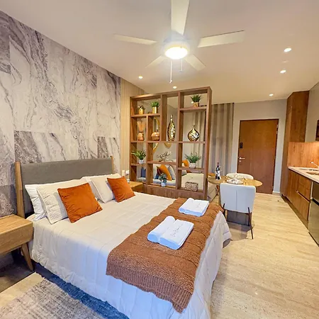 Luxury Studio In The Heart Of Playa Del Carmen, som ligger i distriktet Centro 2 km från Playa Punta Esmeralda, erbjuder en pool och en terrass. Sun Jaguar kan nås på 10 minuters promenad från den 38 m² stora lägenheten.
